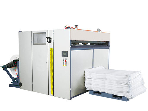 本機(jī)組主要適用于各種集裝袋的裁剪要求(除圓型底、蓋外),集多種功能于 一體。主要功能包括:裁剪筒料、 方型底、蓋,可在方型底、蓋上開圓孔及十 字孔;可裁剪 U 型袋的大片、小片、蓋。